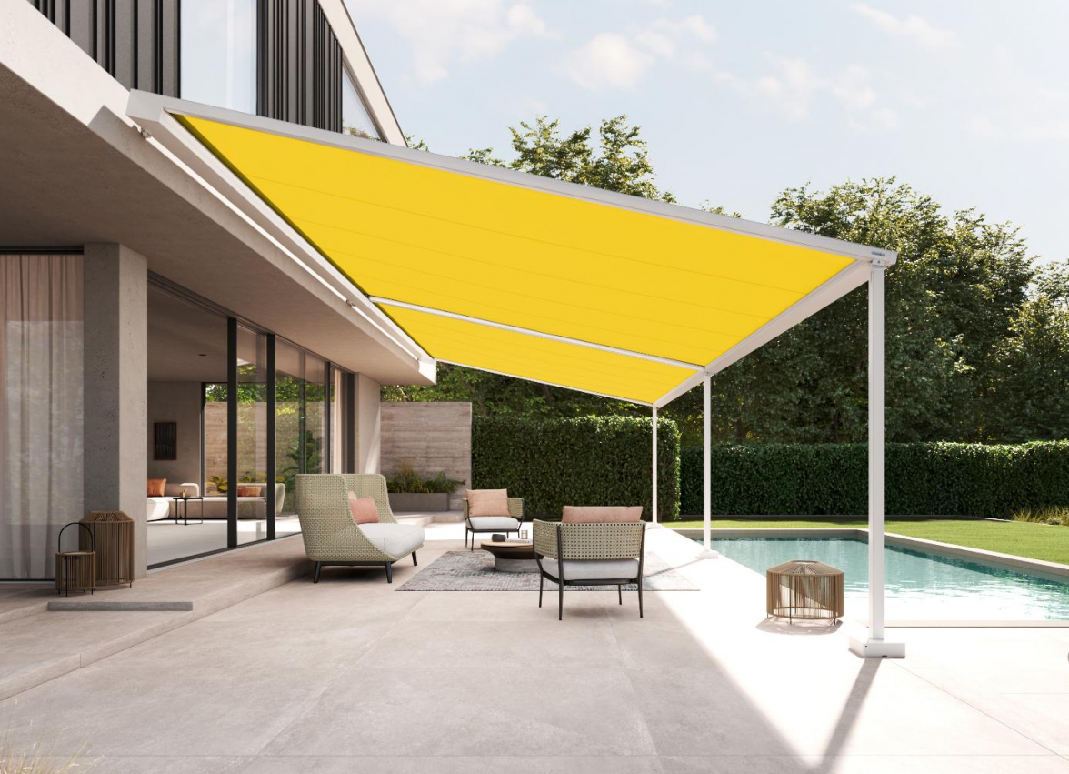 Auch für kleinere Terrassen hat die Firma Emken die entsprechenden Lösungen. Die pergola compact zum Beispiel vereint die grazile Form der klassischen Pergola mit modernstem Produktdesign und anspruchsvoller Technik.