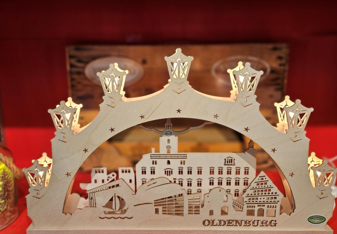 Schwibbögen aus dem Erzgebirge haben eine lange Tradition. Ganz neu bei RÜTHER: ein weihnachtlicher Schwibbogen mit berühmten Oldenburger Bauwerken. Ein Highlight im eigenen Zuhause oder zum Verschenken.