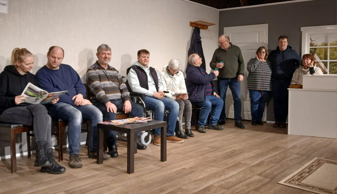 Aus diesen Gründen sowie auf Wunsch einiger Mitglieder fiel dann der Entschluss, das Theaterstück „Well is al bang vör Dr. Wulf“ im Frühjahr 2026 aufzuführen. „Bislang läuft alles sehr zufriedenstellend“, berichtet Frank Mansholt. Da die Kulisse schon seit Anfang des Jahres steht, gehen die Proben mit viel Elan und Spaß in der fertigen Kulisse über die Bühne.